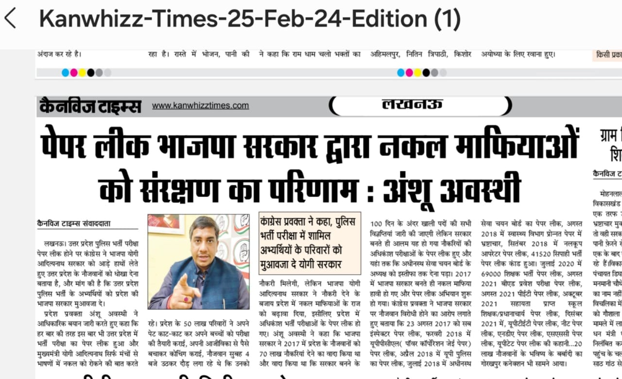 कांग्रेस वह पार्टी है जो सभी धर्मो जातियों एवं भारत के सभी दिशाओं को जोड़कर रखती है, यह विशेषता ही हमें कांग्रेस को अन्य राजनीतिक दलों से अलग बनाती है, पहचान देती है। आजादी की लड़ाई के बाद भारत के लोकतंत्र को विश्व में जो सर्वश्रेष्ट बनने की पहचान मिली उसका श्रेय हमारे उन महान नेताओं को जाता है, जिन्होंने अपनी निजी विषयों को छोड़कर देश के प्रत्येक नागरिक के लिए संविधान की रचना की और देश को एक शिल्पकार के रूप में गढ़ा और त्याग की प्रतिमूर्ति बनाकर लोकतांत्रिक मूल्यों को सर्वोच्च पर रखा। यही विशेषता वर्तमान प्रदेश में भी कांग्रेस पार्टी की लोकतांत्रिक खूबसूरती को प्रदर्शित करती है। कांग्रेस की विचारधारा से प्रेरित होकर अंशू ने इसे आत्मसात किया और इस विचारधारा के साथ आगे बढ़े वर्तमान समय में उत्तर प्रदेश कांगेस प्रवक्ता है। अंशू अवस्थी की ज़िंदगी संघर्षो से भरी रही लेकिन वह अडिग नहीं हुए। भारत जोड़ो यात्रा में महत्वपूर्ण भूमिका निभाई, लोकसभा चुनाव में रायबरेली के प्रभारी बनकर के एल शर्मा की जीत के सारथी बने ।